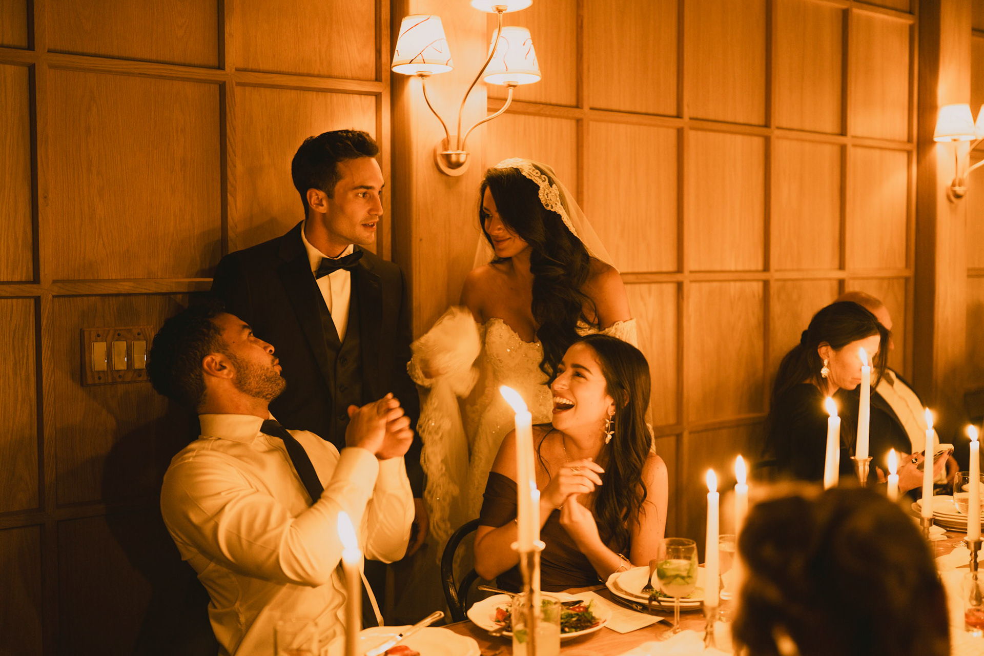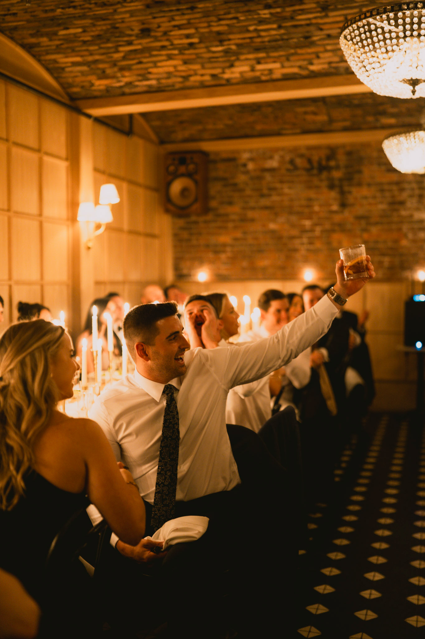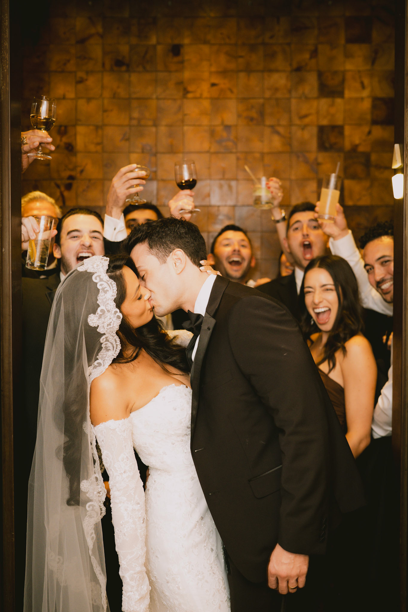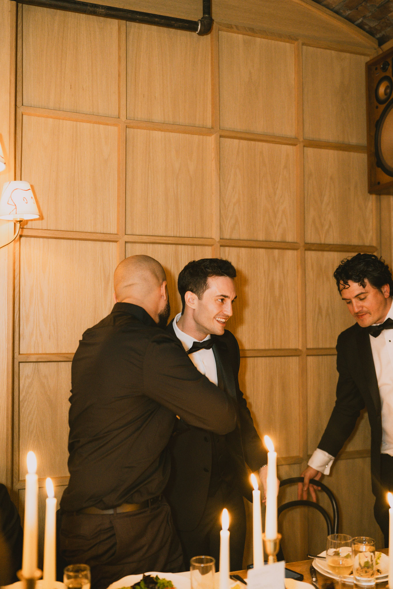 Groomsmen loosening up before the ceremony in Bar Blondeau