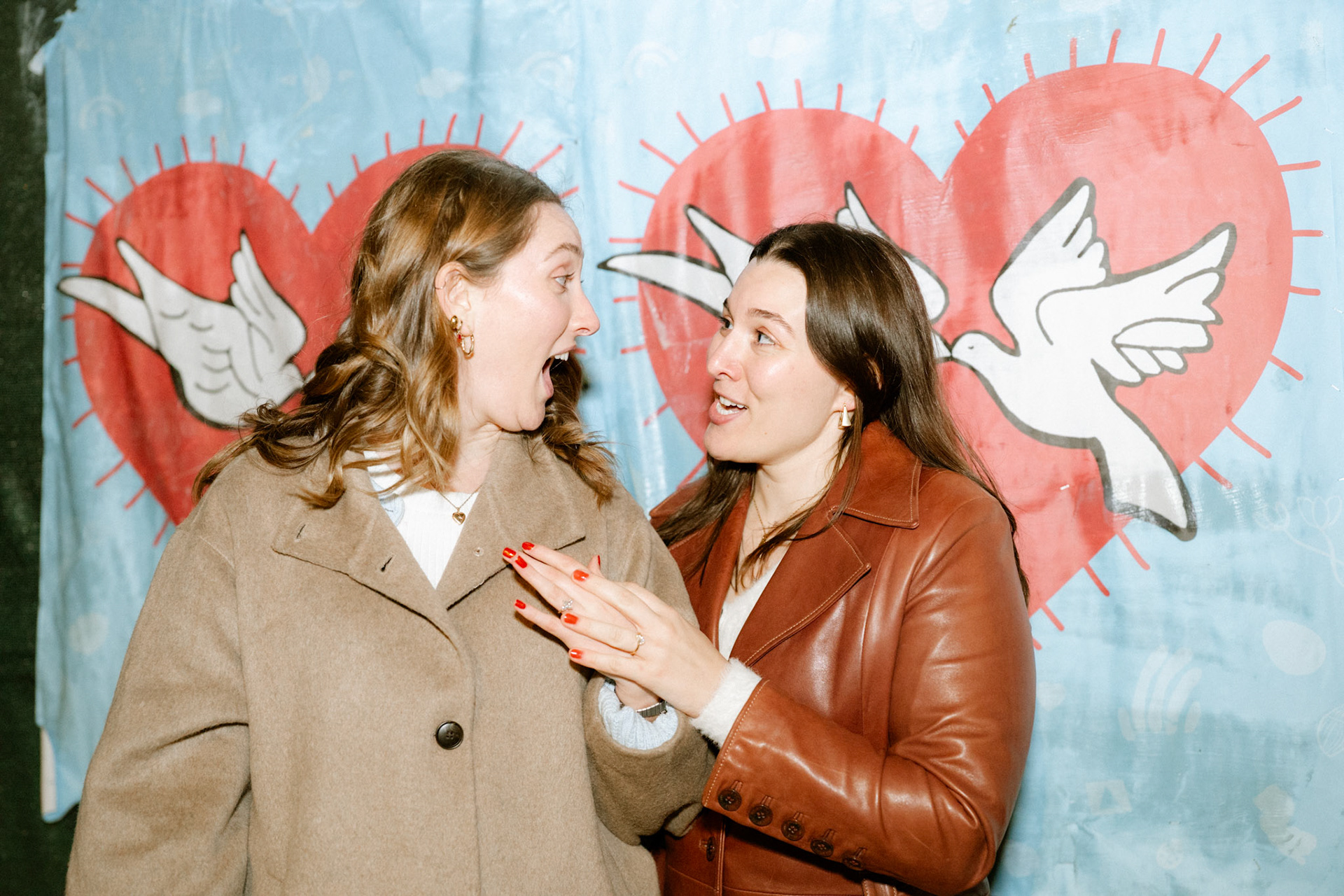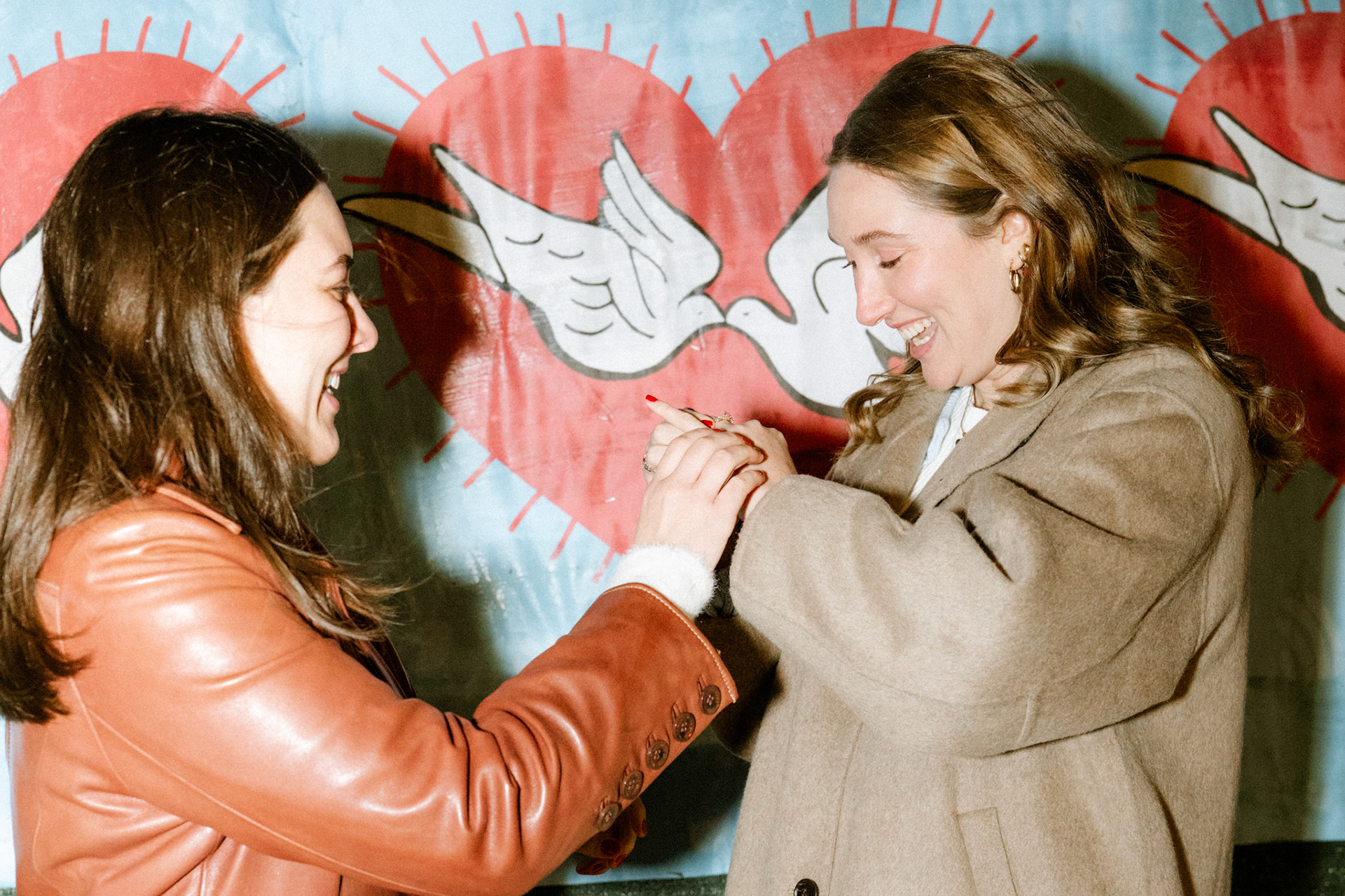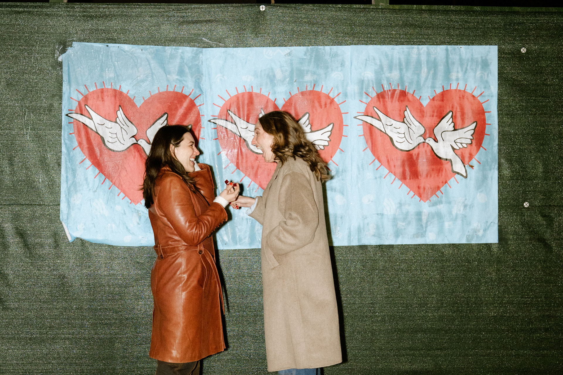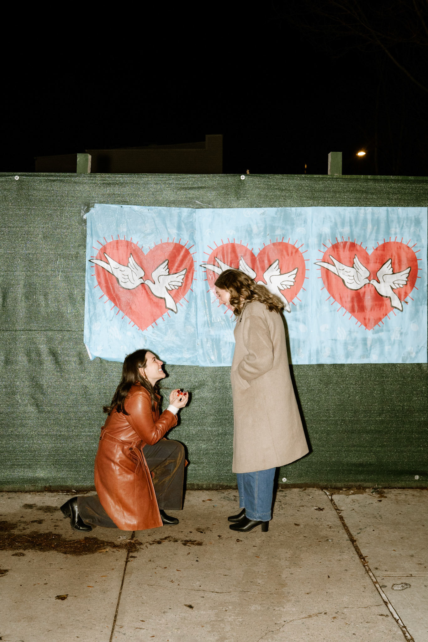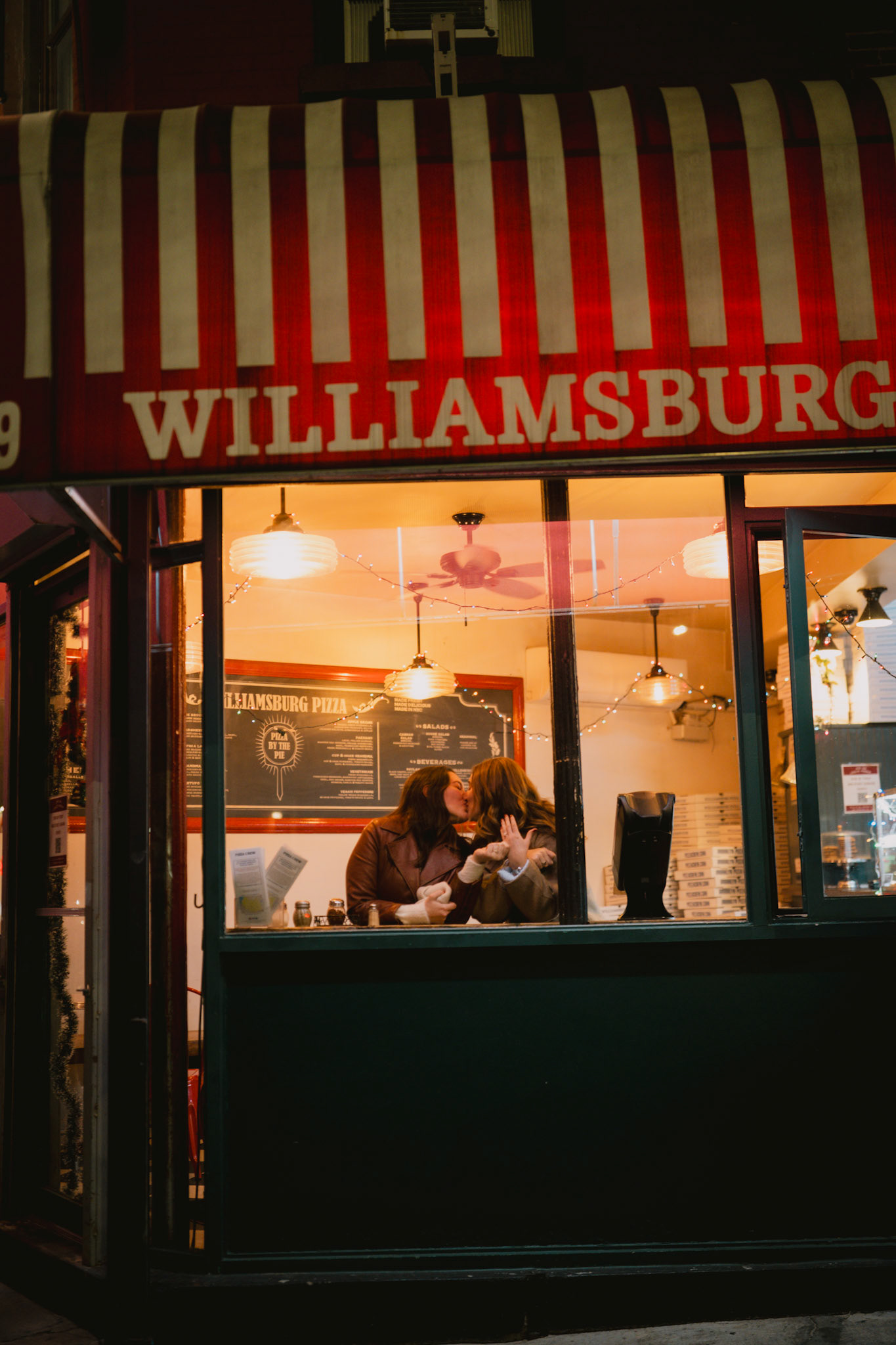 Typically I'm a simple gal, but there are some occasions where I can't help but go all out. When my friend, Cath, approached me to brainstorm ways to capture her surprise proposal to her girlfriend and my dear friend, Jenna, I was all too eager to scheme. One fake Instagram photoshoot giveaway later and I was casually photographing the couple around Williamsburg. Cath got down onto one knee in front of a poster she designed and wheat-pasted to an iconic green NYC wall with symbolism of their love. We celebrated and laughed about the hoax giveaway together at Williamsburg House of Pizza, but the surprises weren't done. A casual suggestion we get drinks at Crystal Lake lead us to the bar where all their family and friends were hiding. This Christmastime proposal will definitely live in my memory forever.