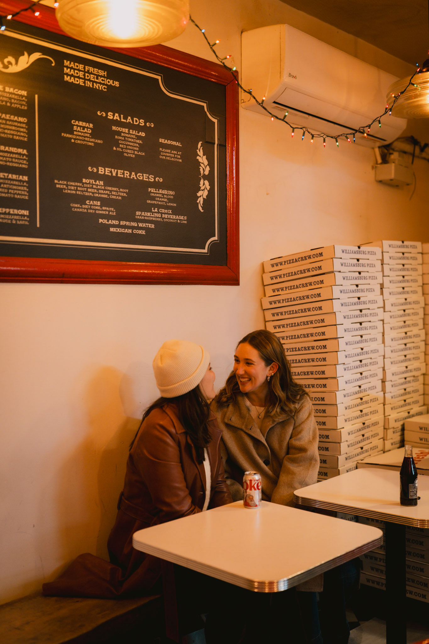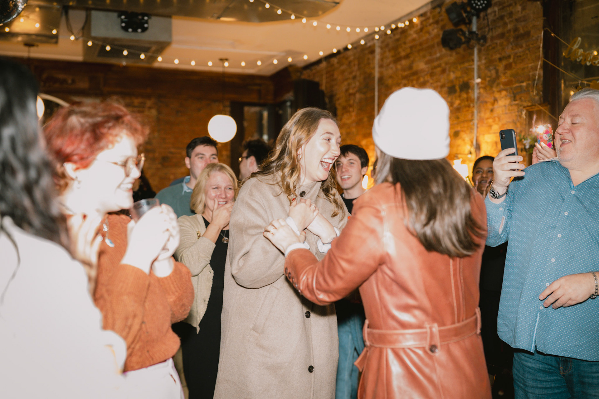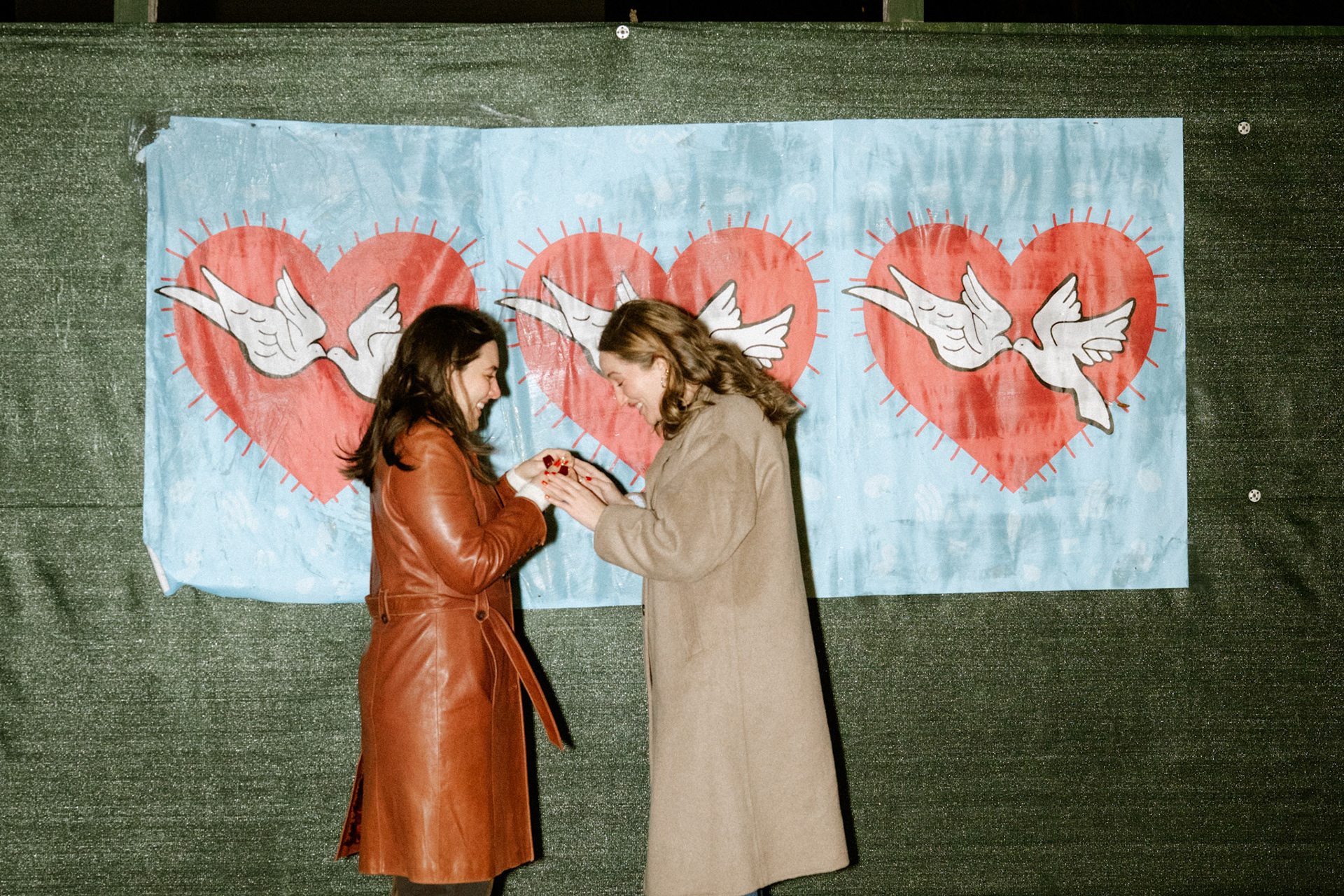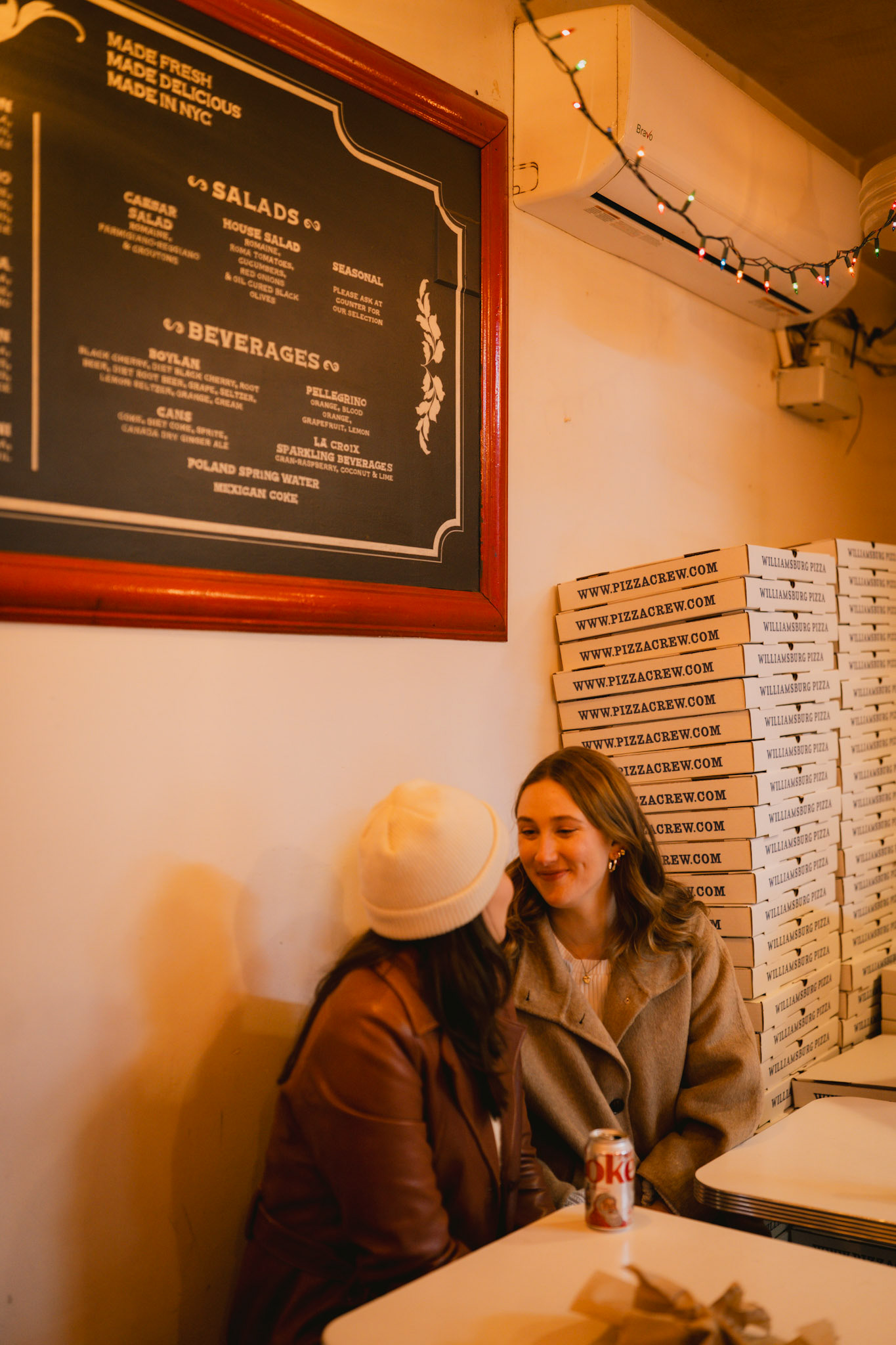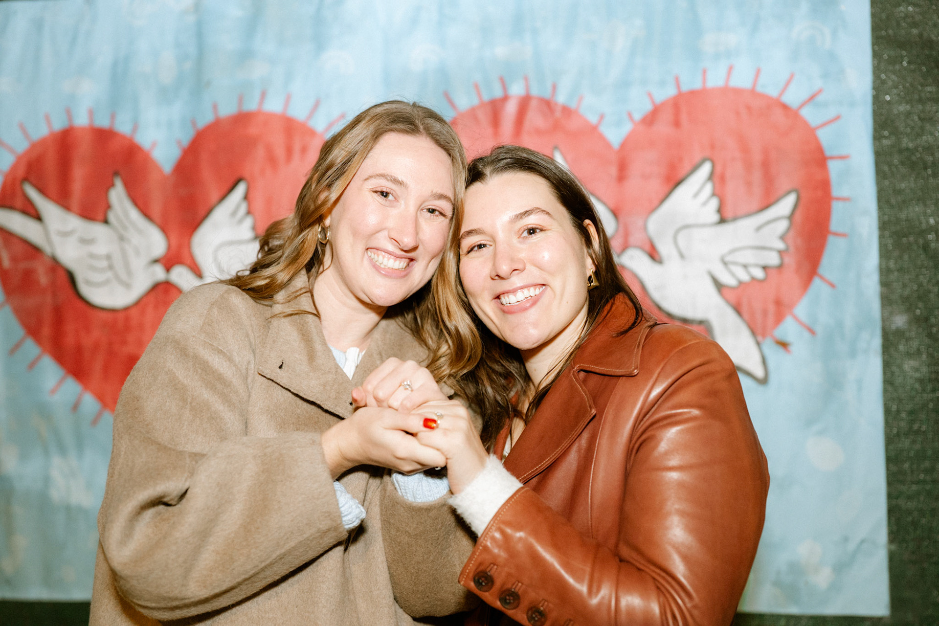 Typically I'm a simple gal, but there are some occasions where I can't help but go all out. When my friend, Cath, approached me to brainstorm ways to capture her surprise proposal to her girlfriend and my dear friend, Jenna, I was all too eager to scheme. One fake Instagram photoshoot giveaway later and I was casually photographing the couple around Williamsburg. Cath got down onto one knee in front of a poster she designed and wheat-pasted to an iconic green NYC wall with symbolism of their love. We celebrated and laughed about the hoax giveaway together at Williamsburg House of Pizza, but the surprises weren't done. A casual suggestion we get drinks at Crystal Lake lead us to the bar where all their family and friends were hiding. This Christmastime proposal will definitely live in my memory forever.