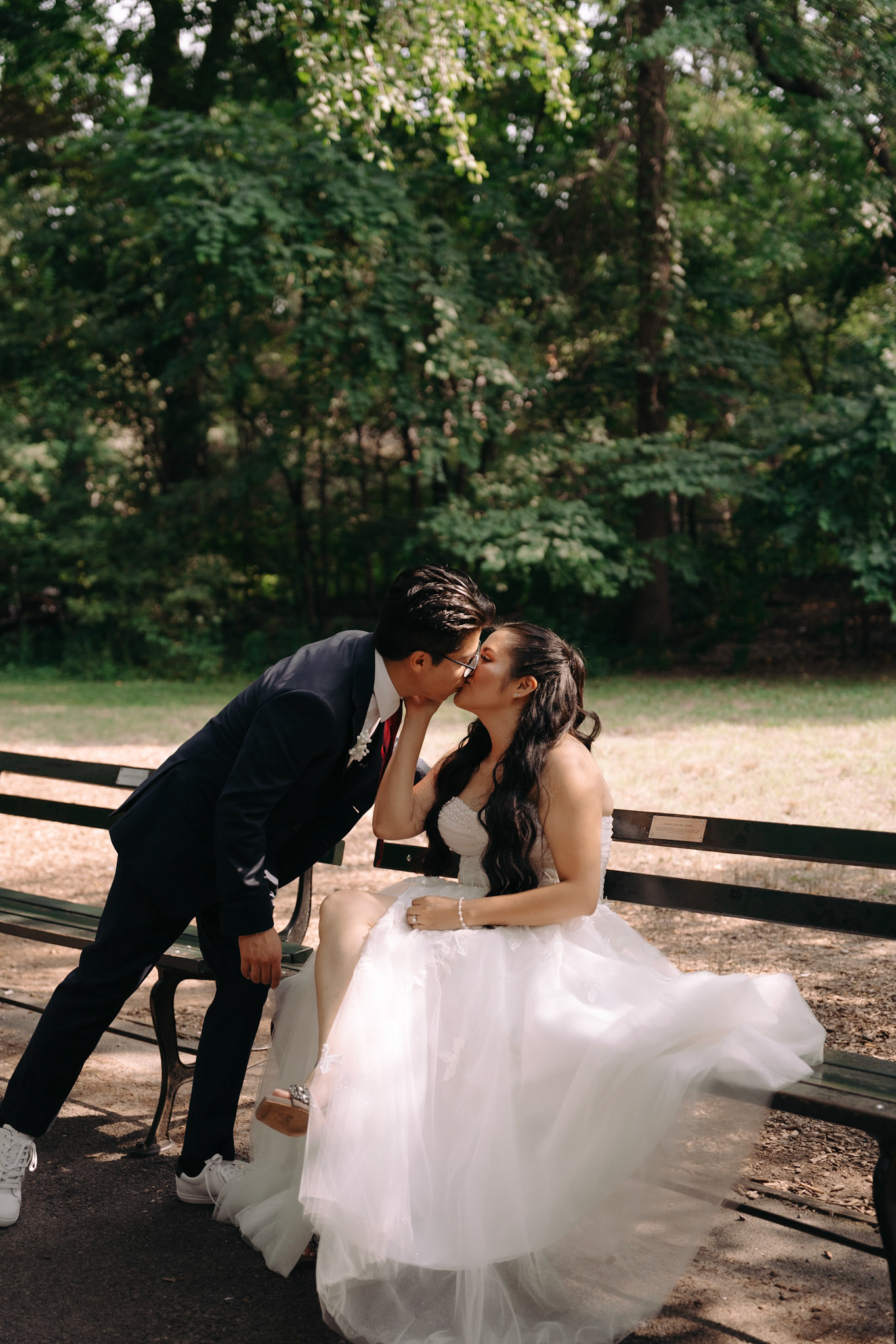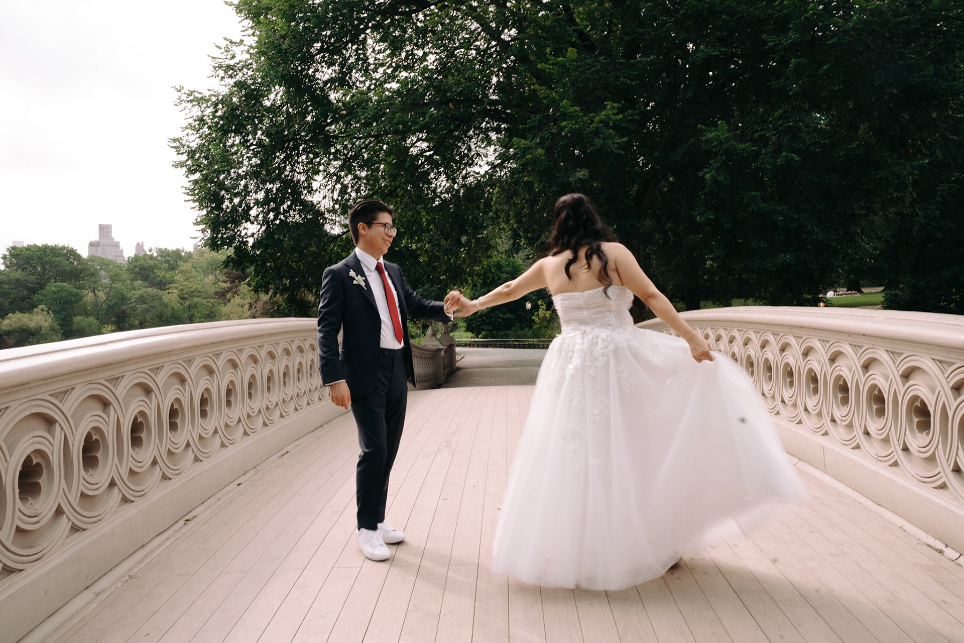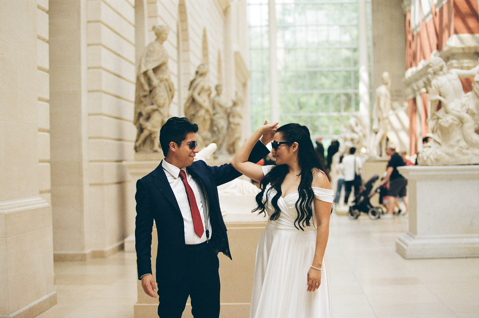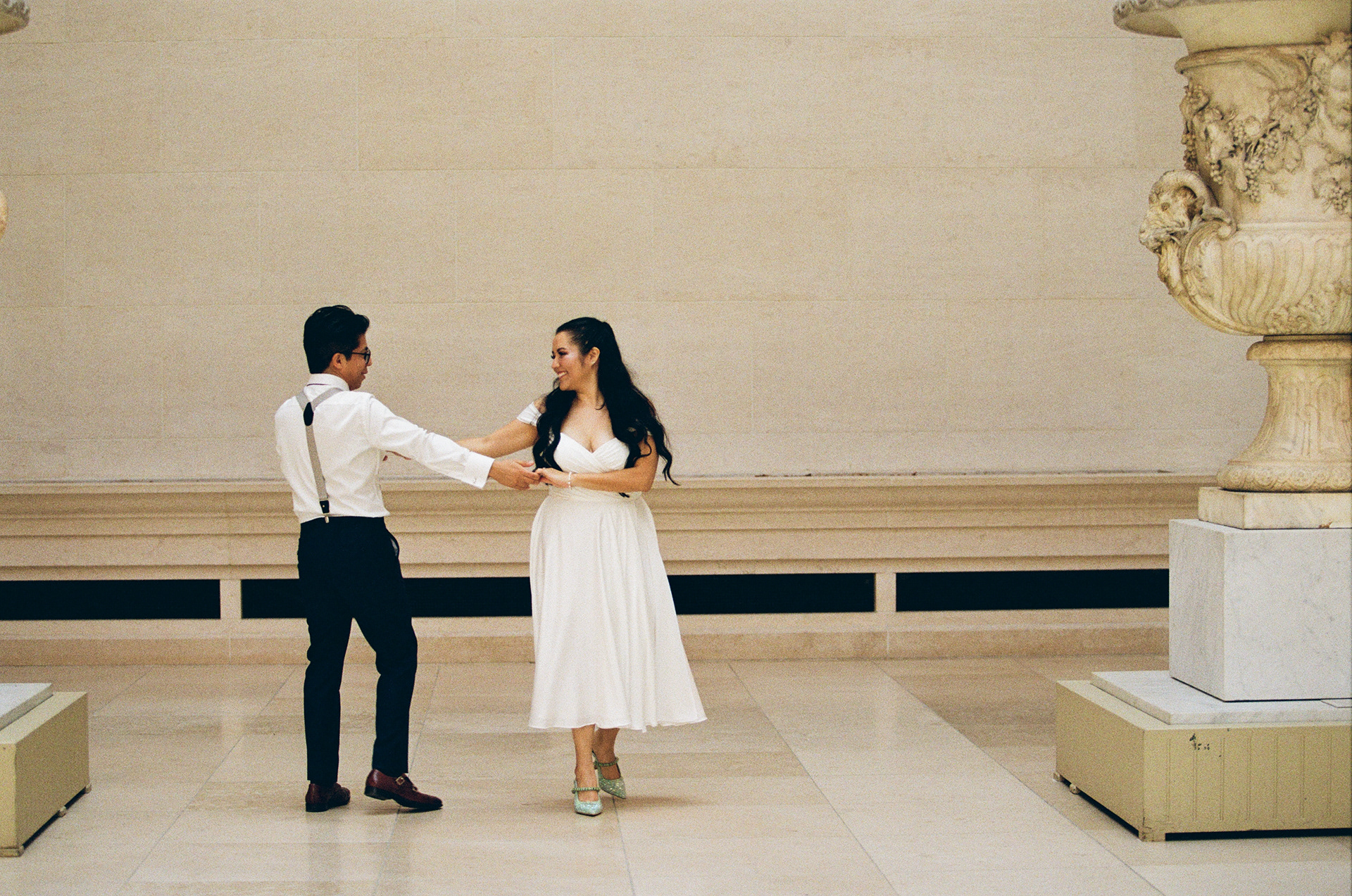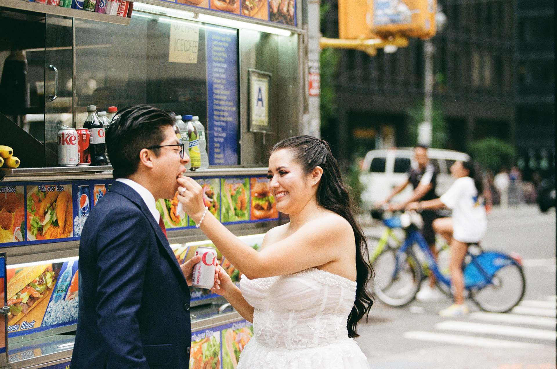 One of my favorite things about shooting elopements for out-of-town couples is getting to traipse through the city feeling like I'm watching a rom-com unfold in real time. Sam & Mina wanted to celebrate their love in all the dreamiest NYC locations, from a ceremony in Central Park to portraits in the Met and the Public Library, finishing it all off with a hot dog from the cart.