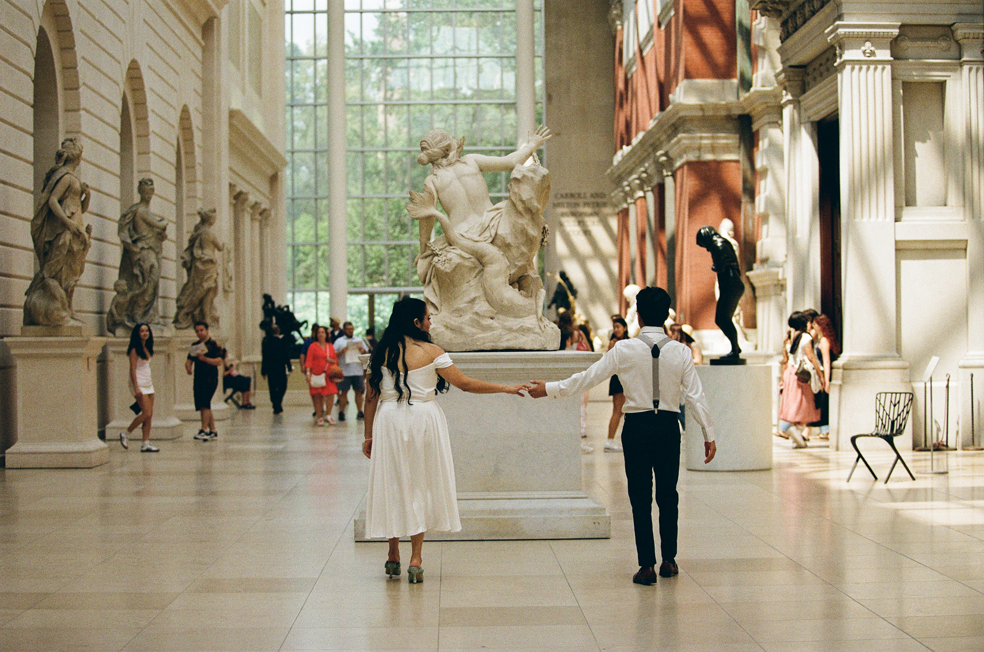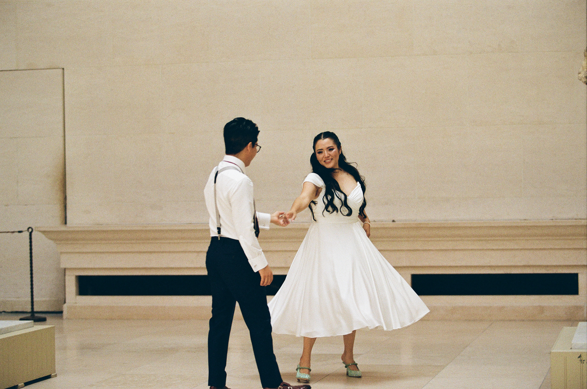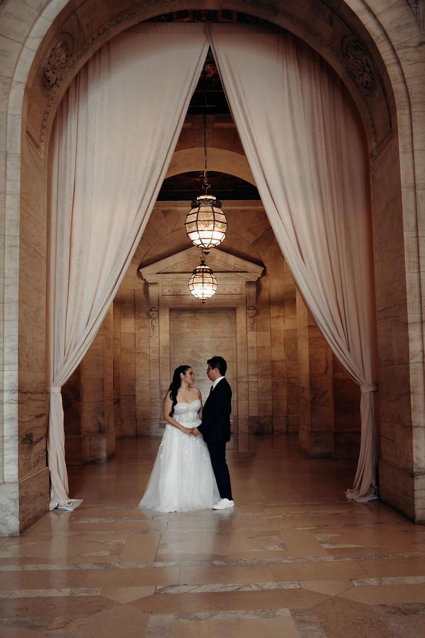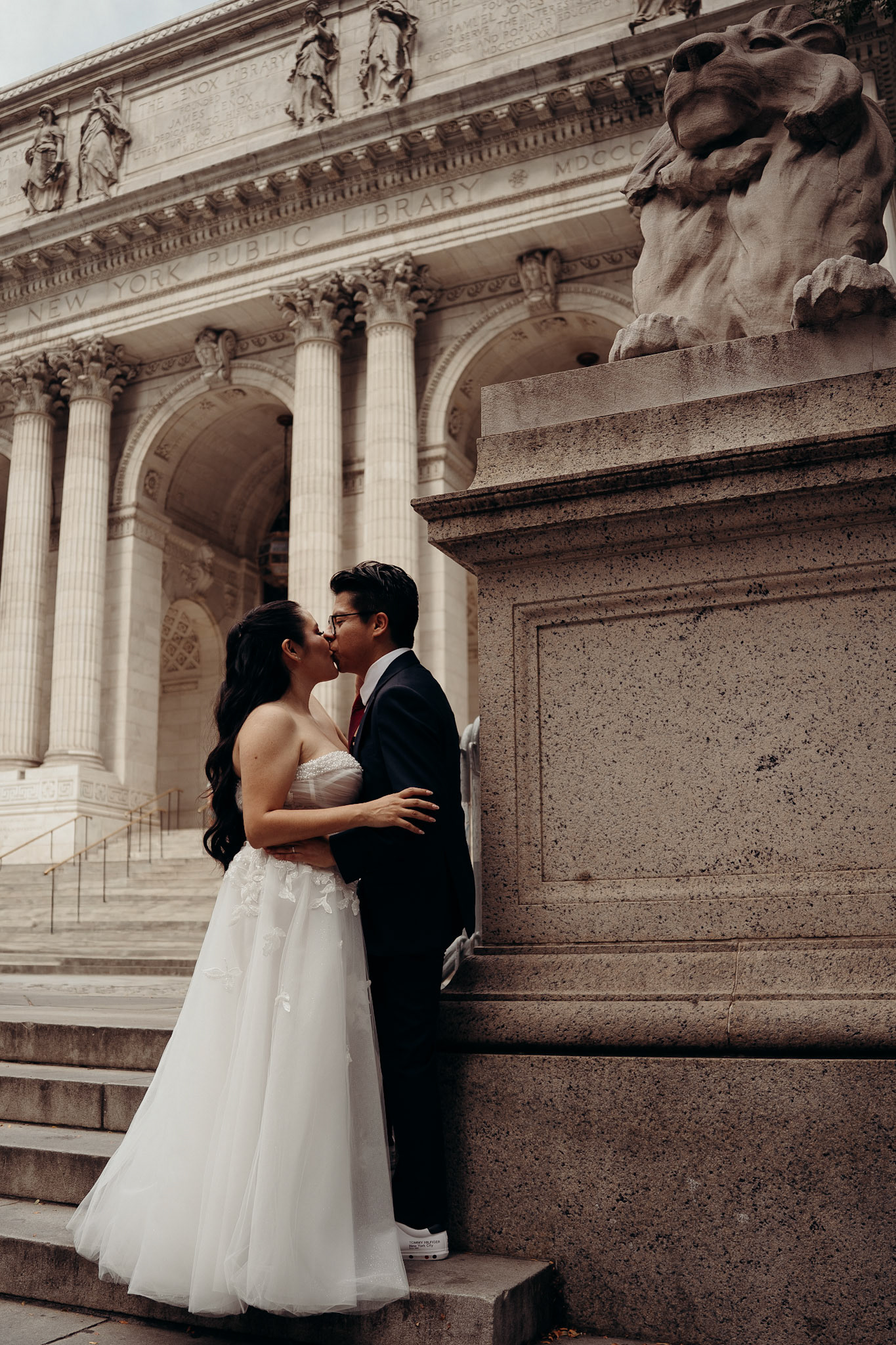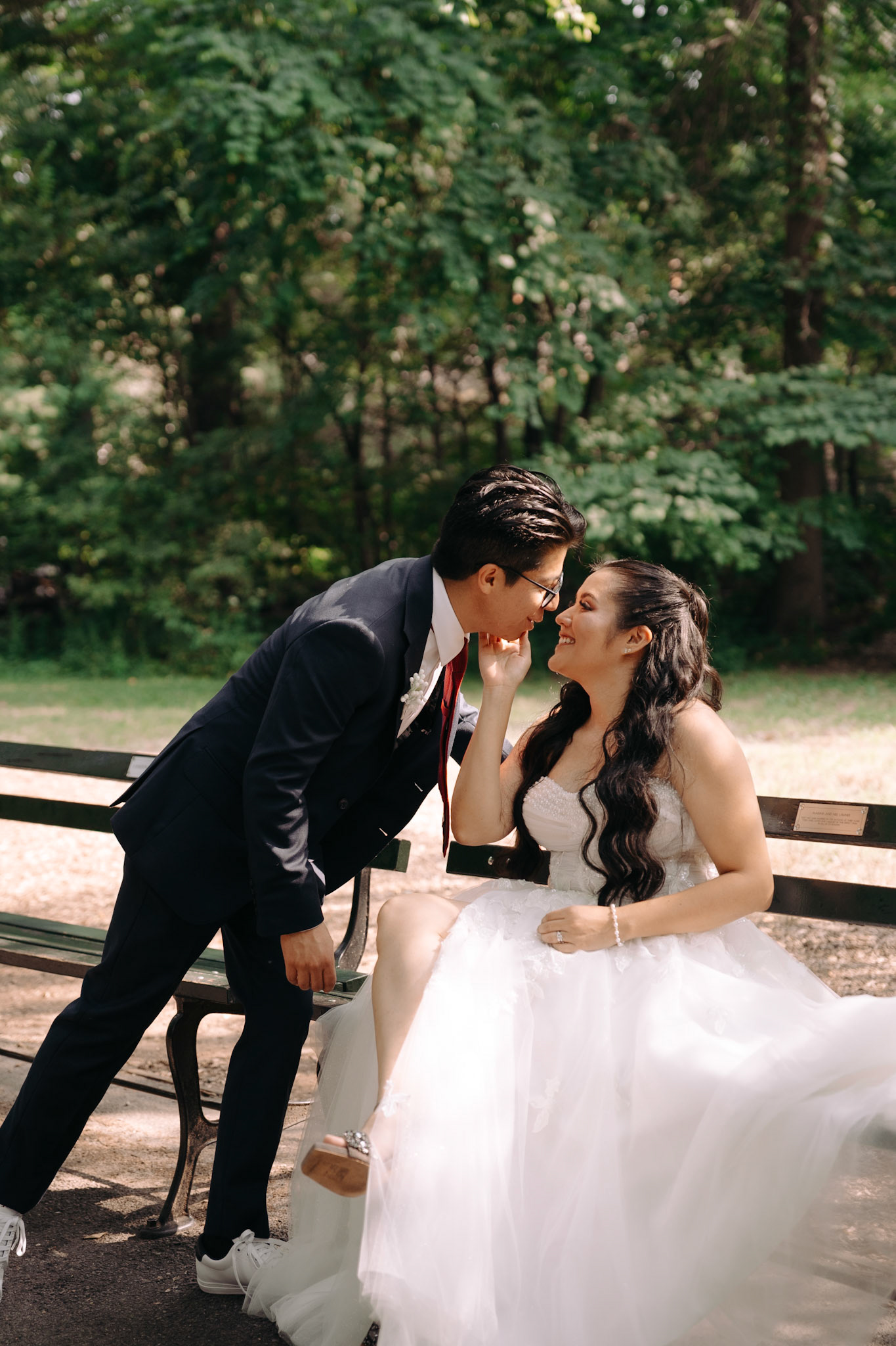One of my favorite things about shooting elopements for out-of-town couples is getting to traipse through the city feeling like I'm watching a rom-com unfold in real time. Sam & Mina wanted to celebrate their love in all the dreamiest NYC locations, from a ceremony in Central Park to portraits in the Met and the Public Library, finishing it all off with a hot dog from the cart.