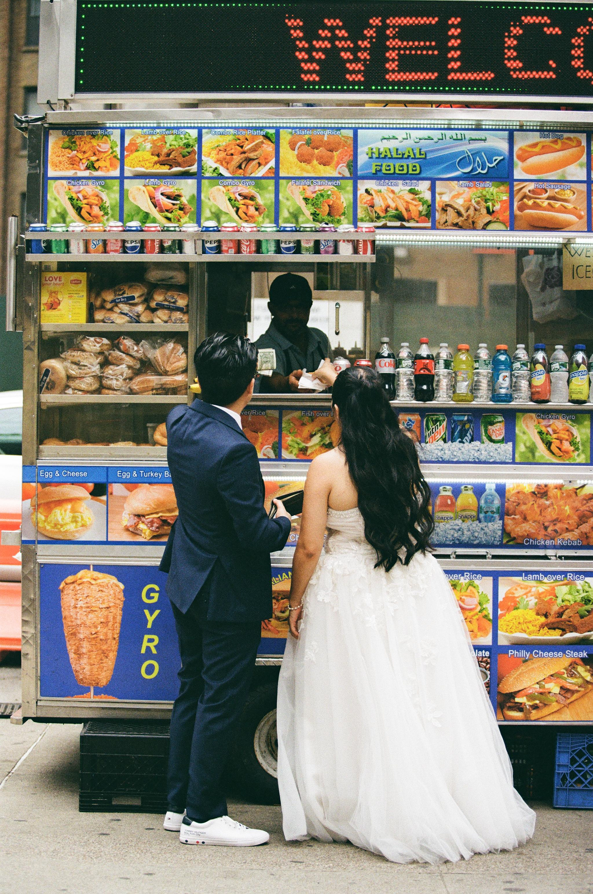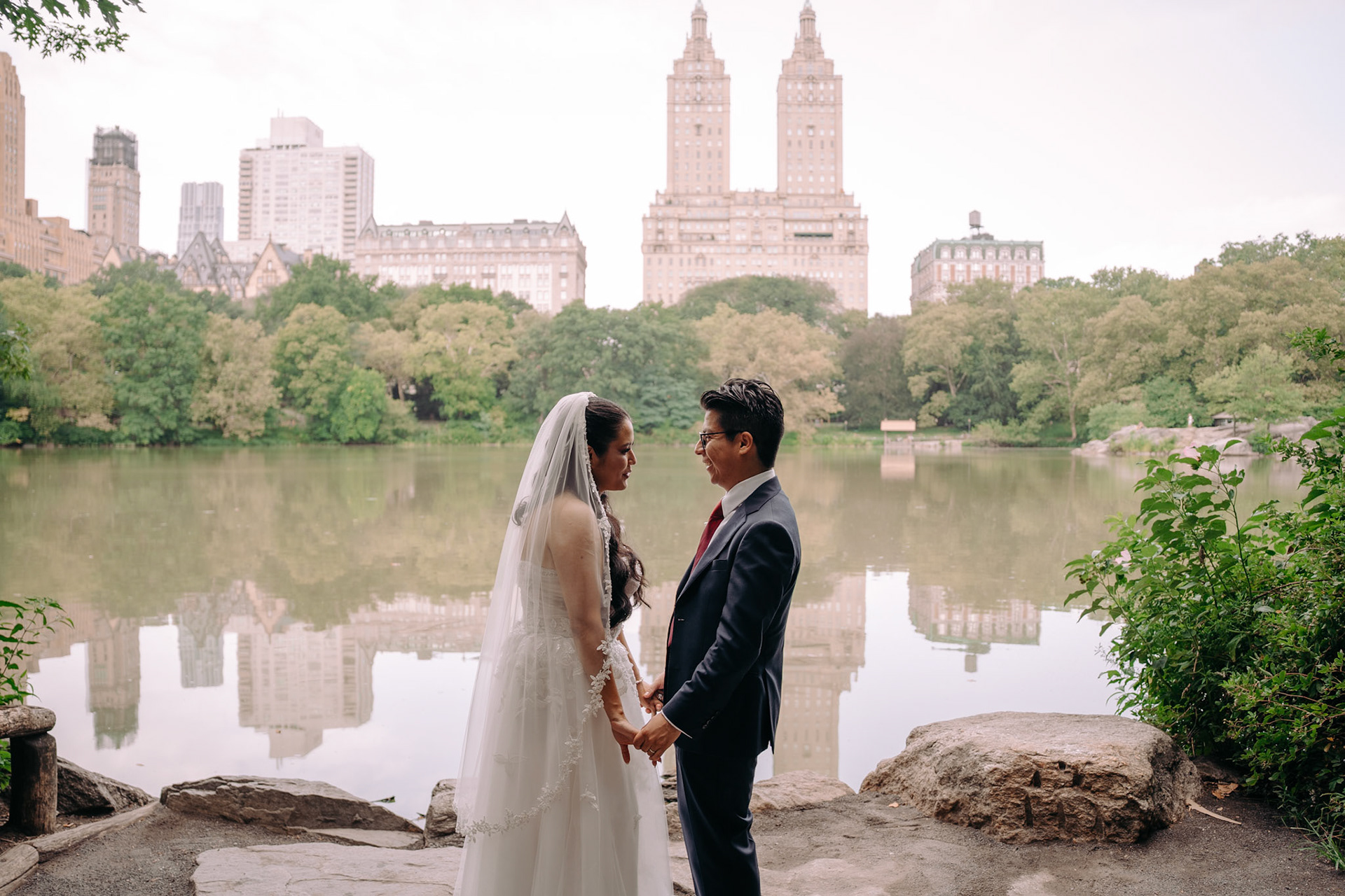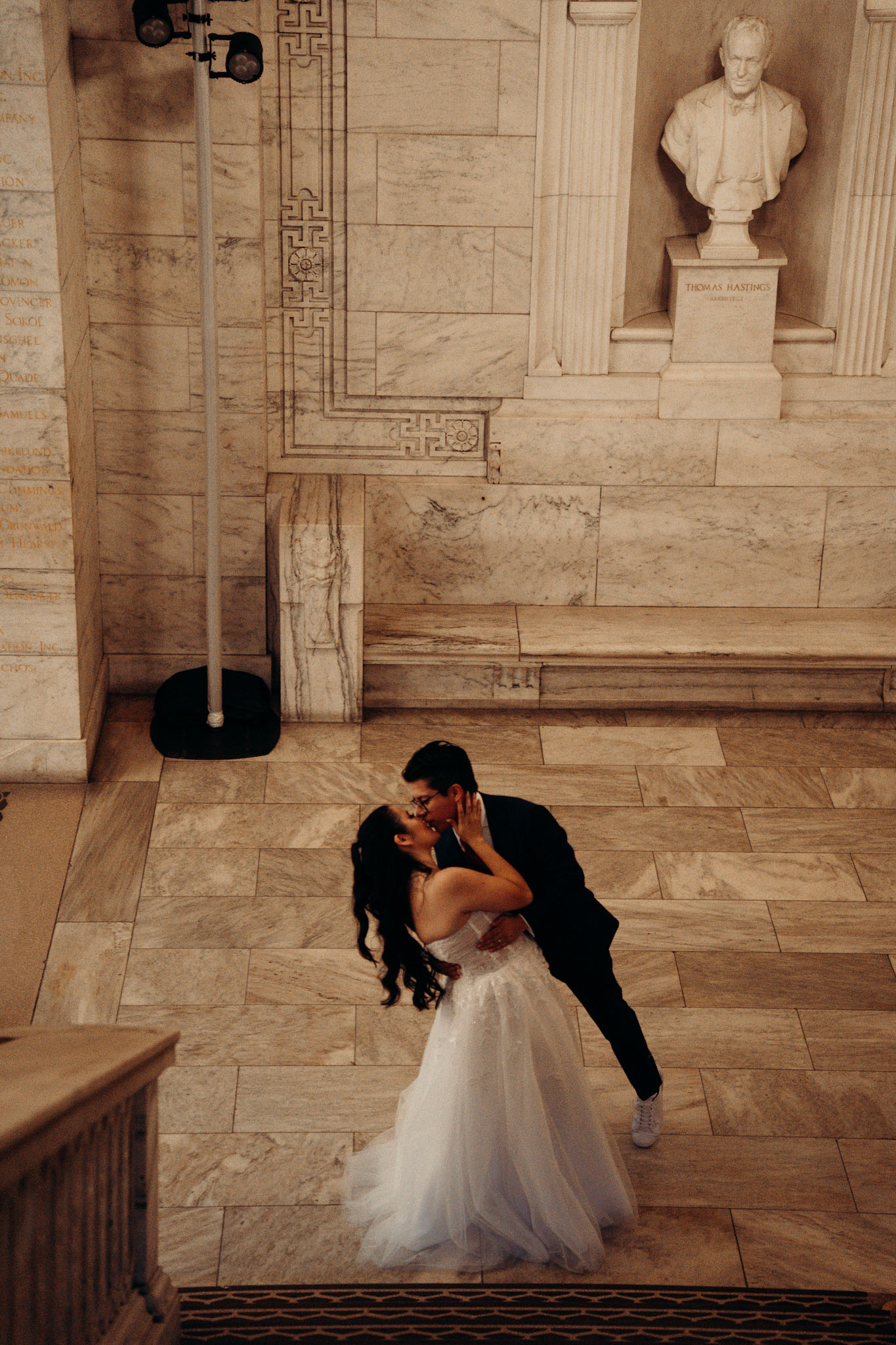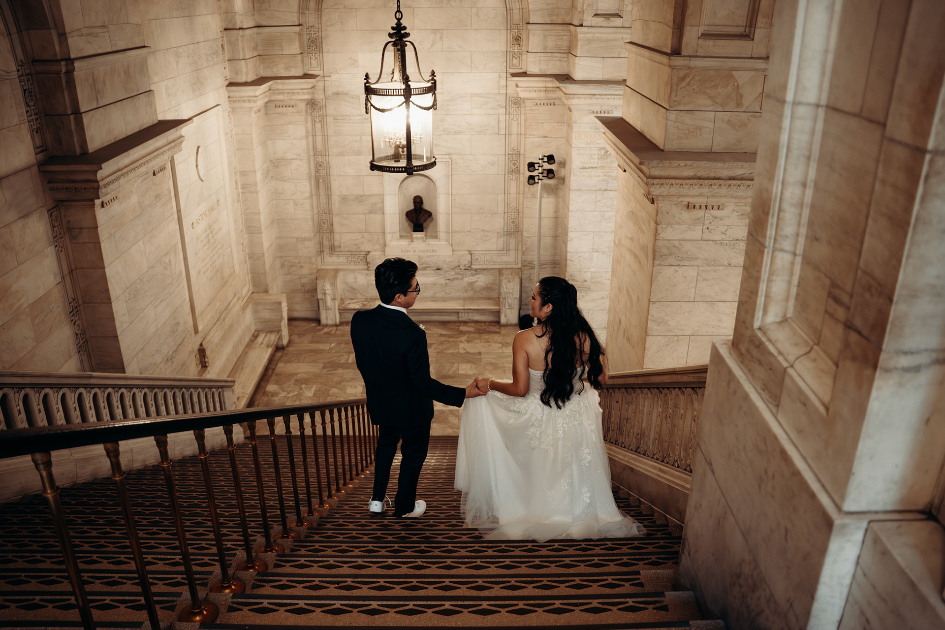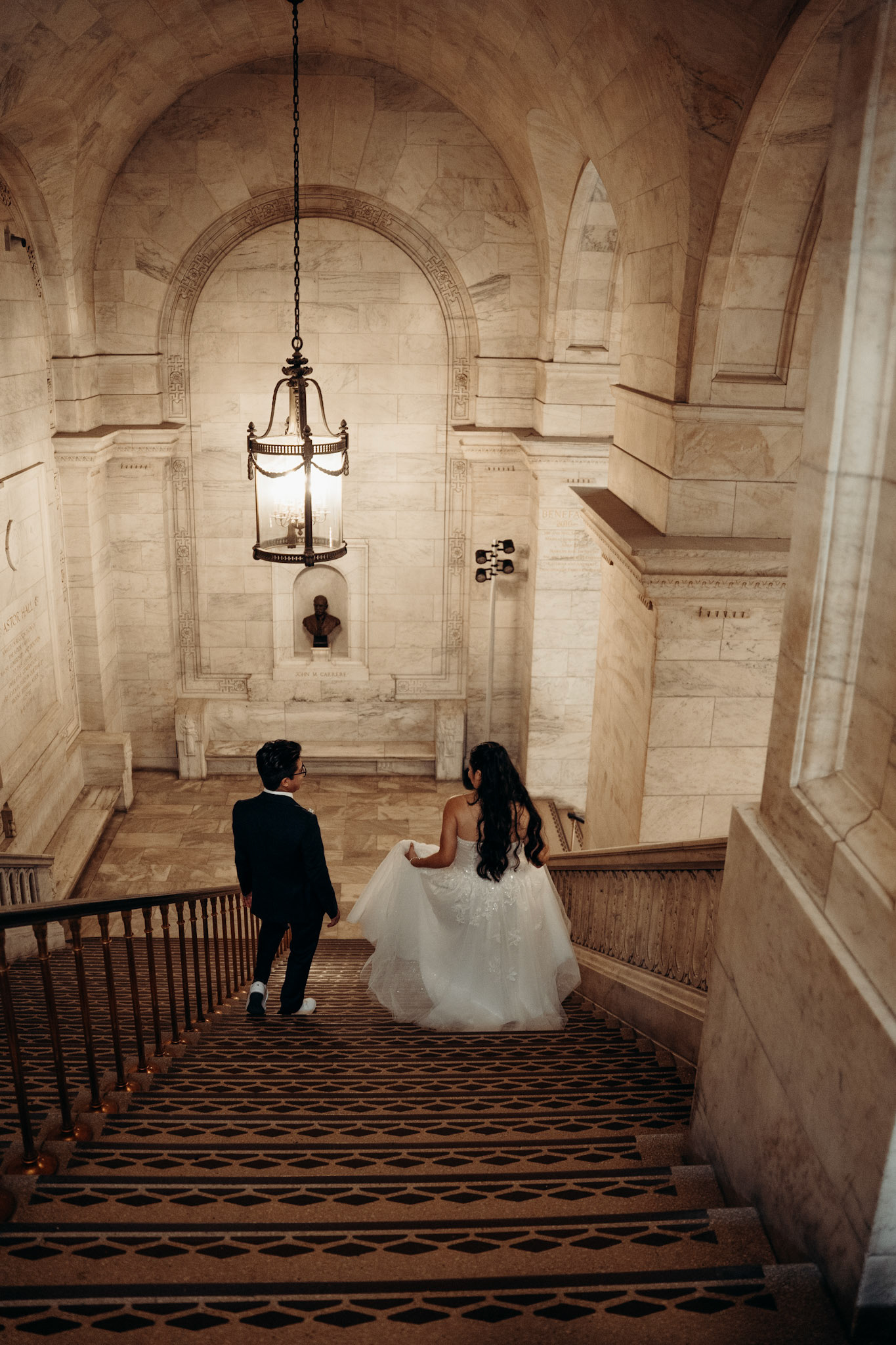 One of my favorite things about shooting elopements for out-of-town couples is getting to traipse through the city feeling like I'm watching a rom-com unfold in real time. Sam & Mina wanted to celebrate their love in all the dreamiest NYC locations, from a ceremony in Central Park to portraits in the Met and the Public Library, finishing it all off with a hot dog from the cart.