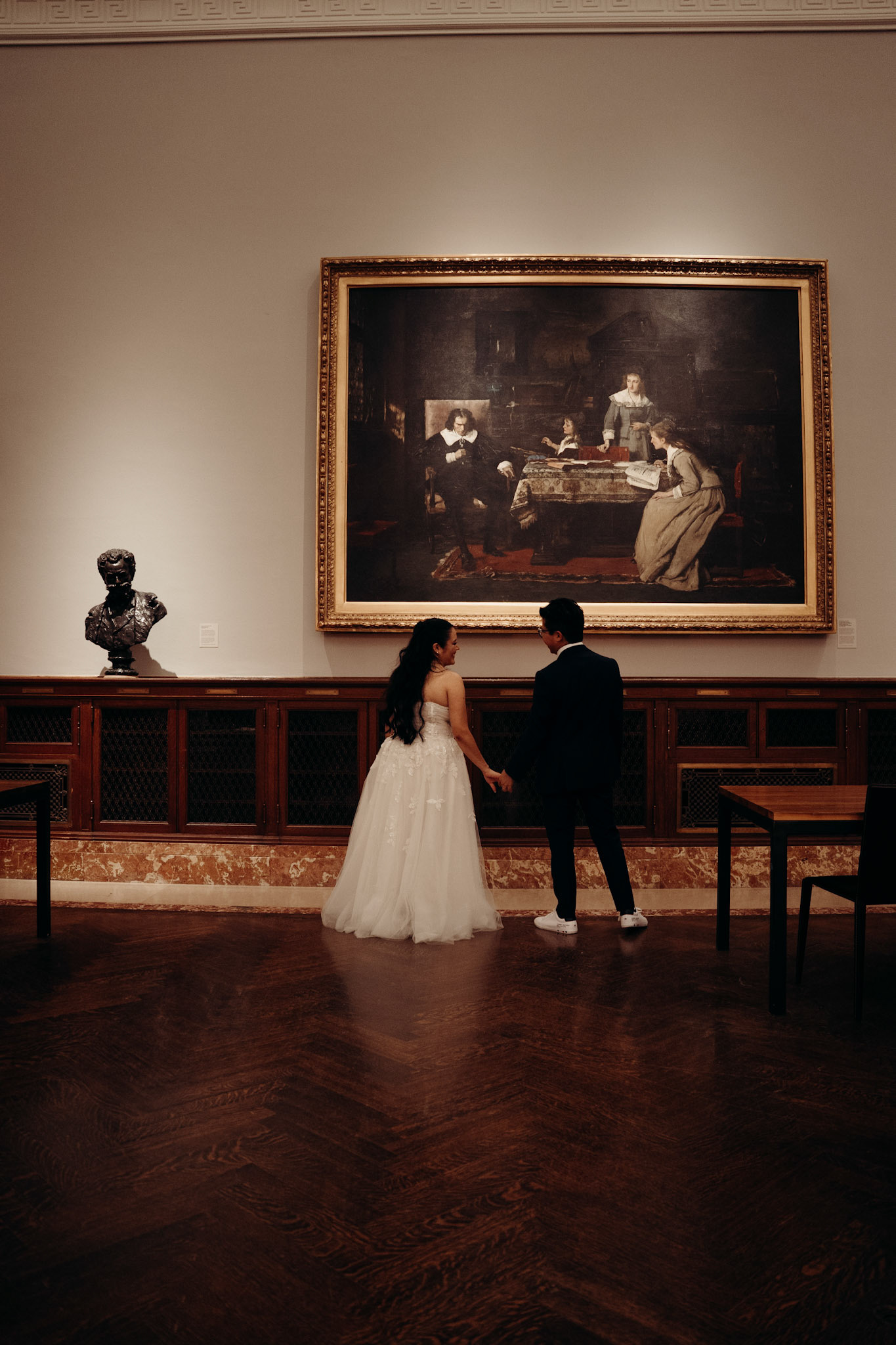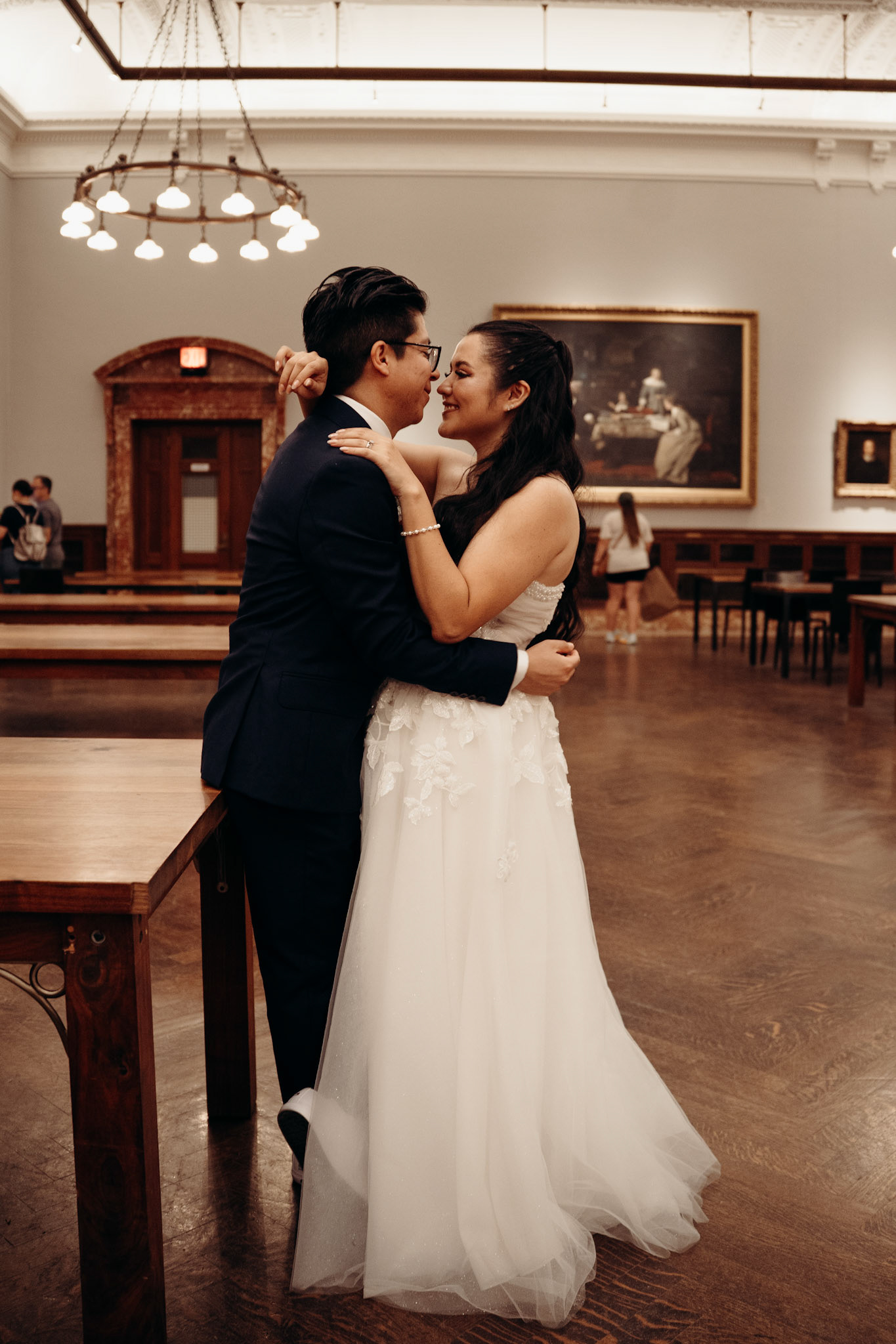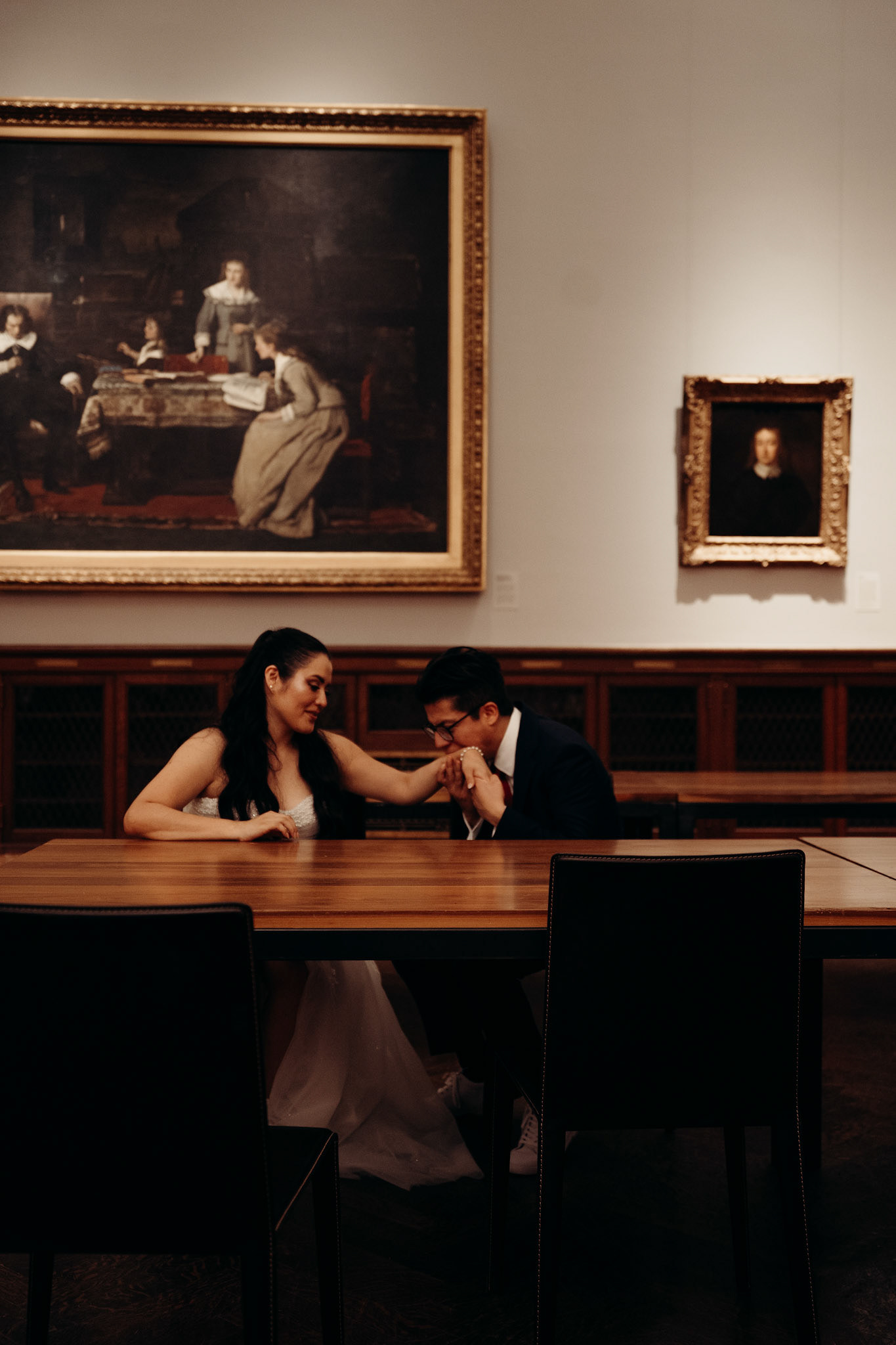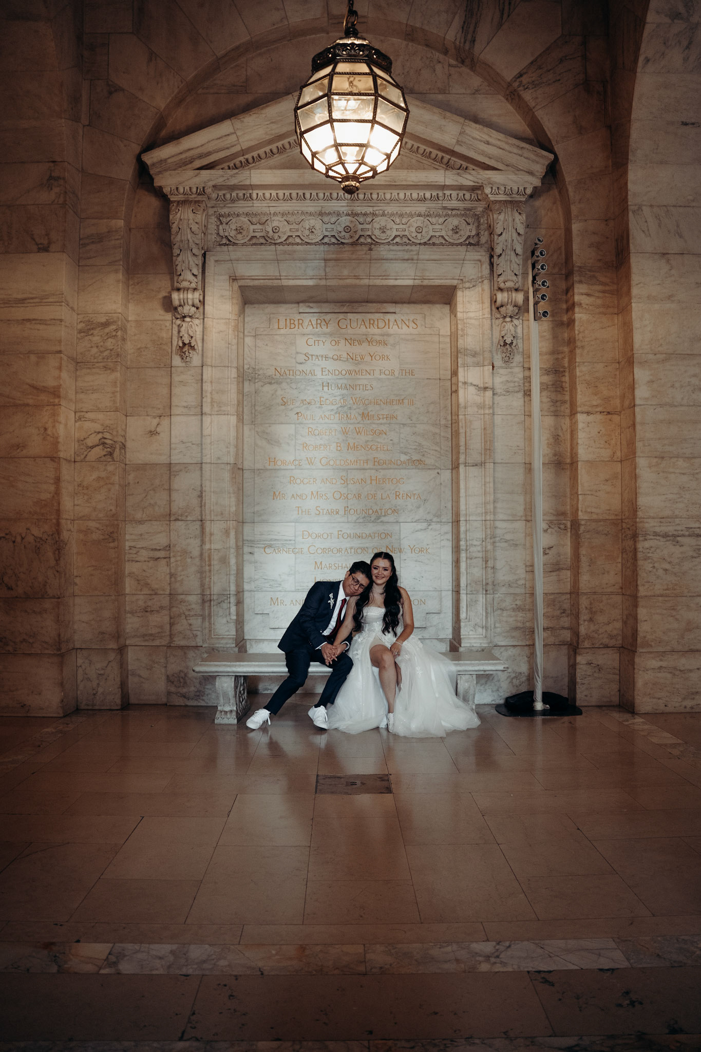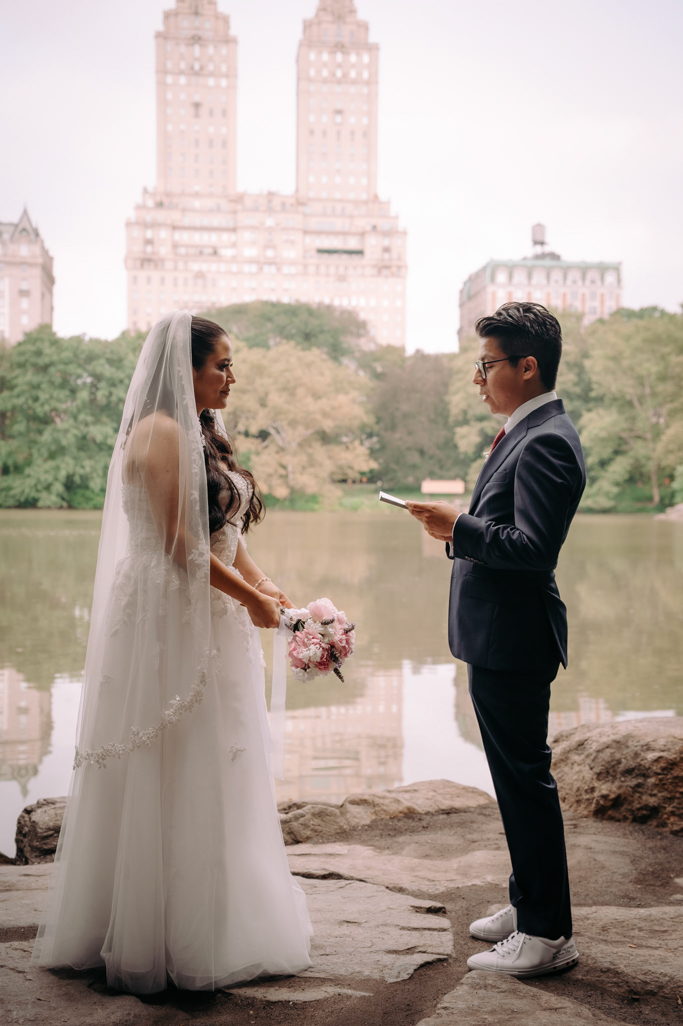 One of my favorite things about shooting elopements for out-of-town couples is getting to traipse through the city feeling like I'm watching a rom-com unfold in real time. Sam & Mina wanted to celebrate their love in all the dreamiest NYC locations, from a ceremony in Central Park to portraits in the Met and the Public Library, finishing it all off with a hot dog from the cart.